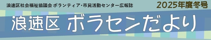 2026/02/12 こんにちは!社協ボランティア担当です! 浪速区ボランティア・市民活動センターの広報誌「浪速区ボラセンだより2025年度冬号」を発行いたしました。 ぜひ、ご一読ください♪ 詳細はこちら ⇒ 浪速区ボラセン便り2025年度冬号☃
